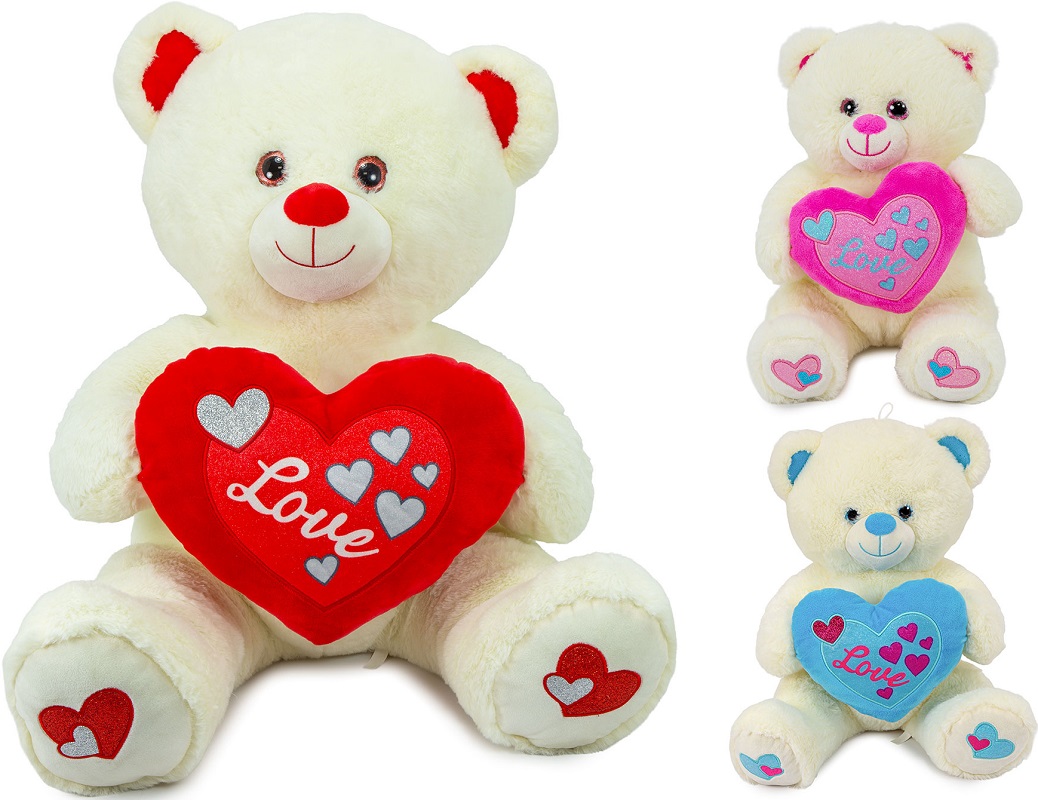 XL Plüsch Bär mit GlitzerAugen, Herz mit Glitzer "LOVE" & Herzen auf den Pfoten 3/s ca. 58cm (Rot, Pink, Blau)