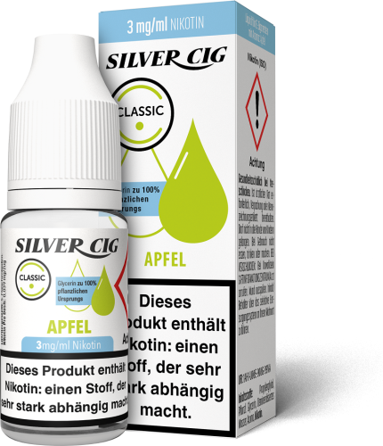 E-Liquid Silver-Cig APFEL 3mg/ml Nikotin 10ml im 5er Dsp.(DPT2 Konform EU Herstellung PG-VG Anteil 70/30%)(mit Steuerbanderole)