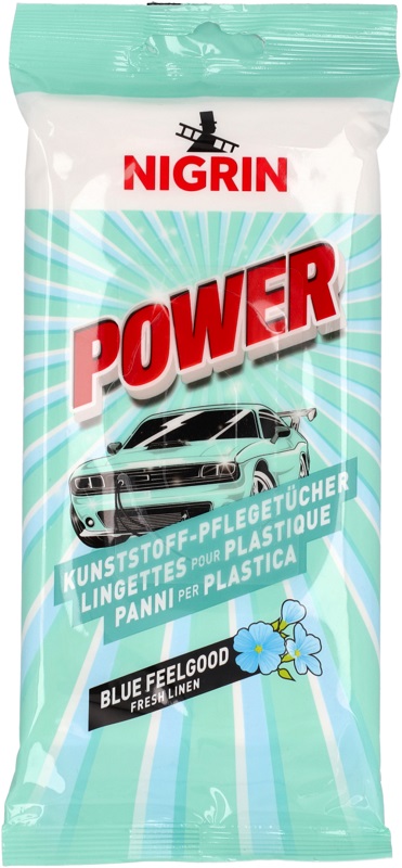 Nigrin POWER Kunststoffpflege-Tücher Blue Feel Good (Fresh-Linen-Duft) je 20 Tüc