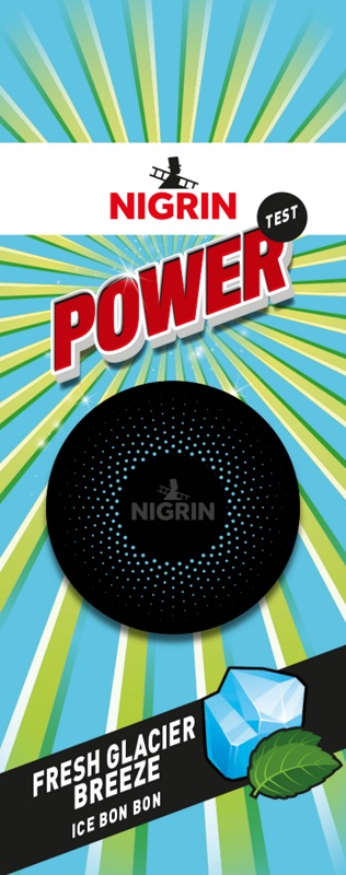 Nigrin POWER Lufterfrischer Fresh Glacier Breeze (Ice-Bonbon-Duft) auf Blisterkarte im 12er T-Dsp.