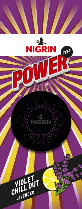 Nigrin POWER Lufterfrischer Violet Chill Out (Lavendel-Citrus-Duft) auf Blisterkarte im 12er T-Dsp.
