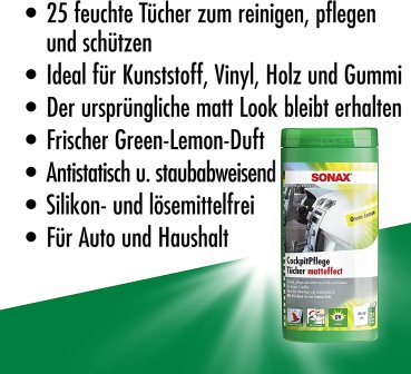 Sonax CockpitPflegeTücher Green Lemon Matteffeckt 20x18cm 25st. in Box