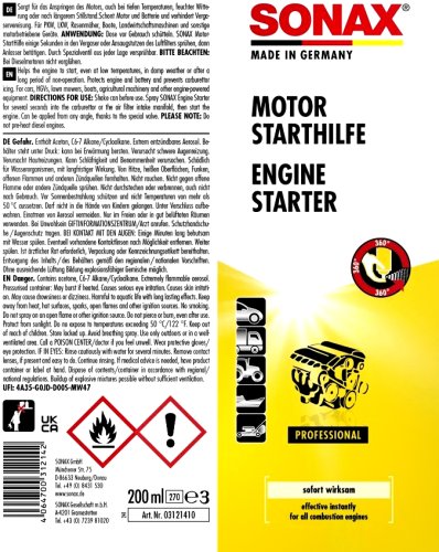 Sonax MotorStartHilfe Professional sofort wirksam in 200ml Spraydose