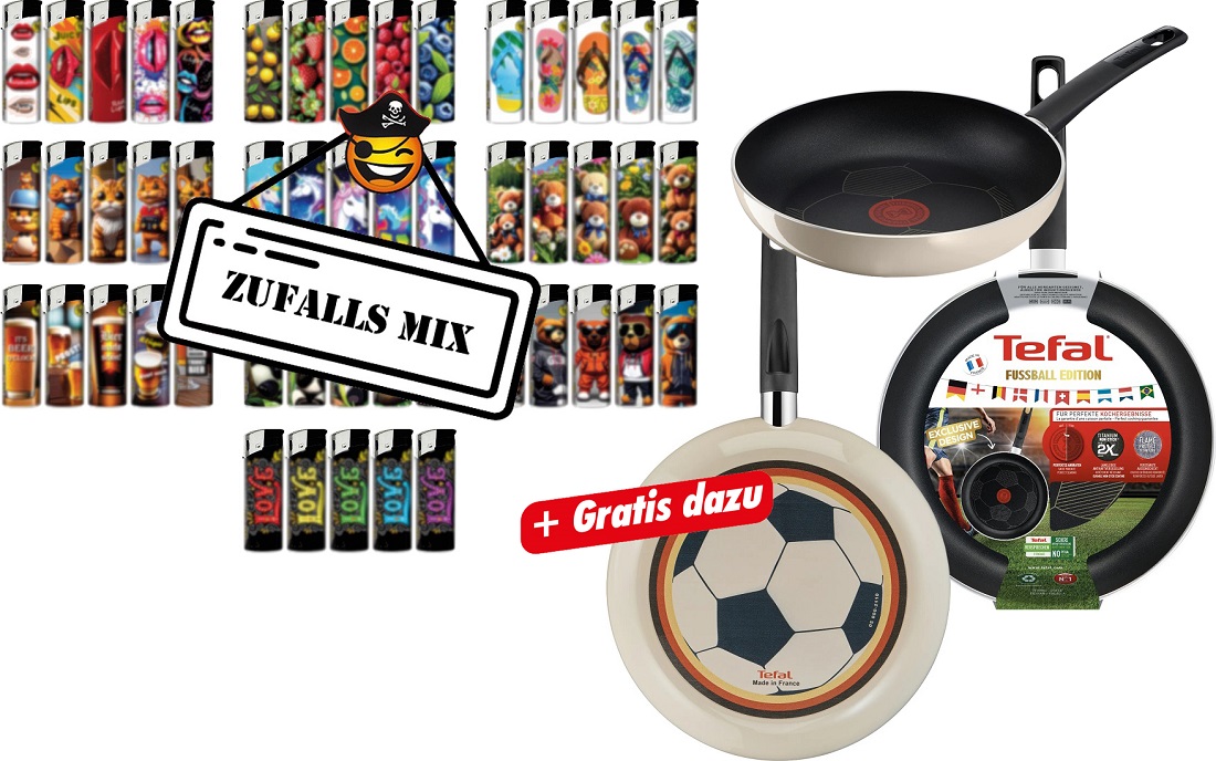Motiv Fzg. Aktionspaket 500 Fzg. Motiv Mix - zufällige Auswahl - GRATIS Tefal Pfanne Fußball-Edition Ø28cm mit exklusivem Design, perfektes Anbraten, langlebige TITANIUM Antihaftversiegelung, verstärkte Außenschicht, für alle Herdarten geeigent ausßer Induktionsherde