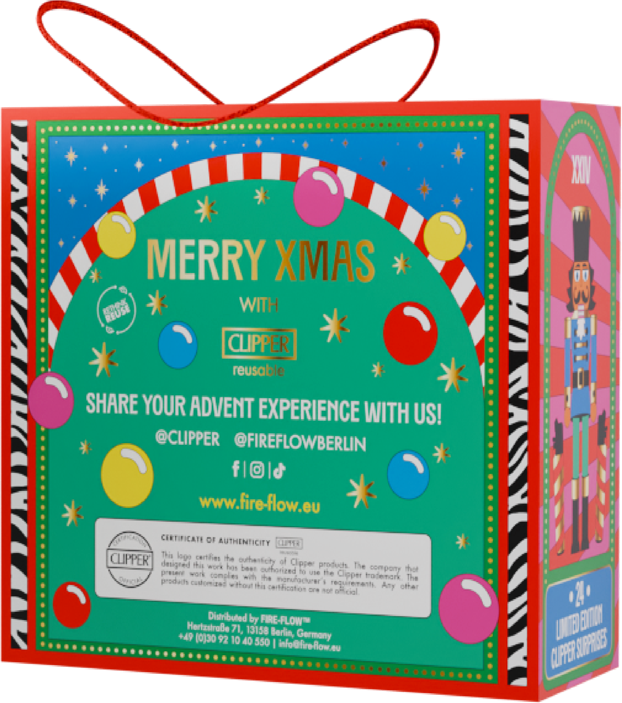 CLIPPER© Adventskalender limitierte Weihnachtsedition - enthält 17 CLIPPER© Feuerzeuge mit exklusiven Weihnachtsmotiven und 7 weitere attraktive Überraschungen rund um CLIPPER