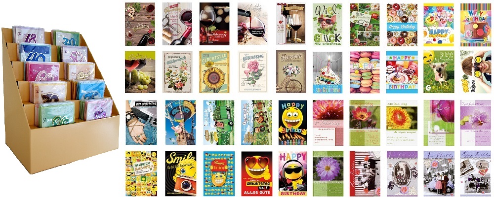 Geburtstagskarten MIX im 200er T-Dsp. in Beige mit 10 Fächern ca. 38x42x23cm