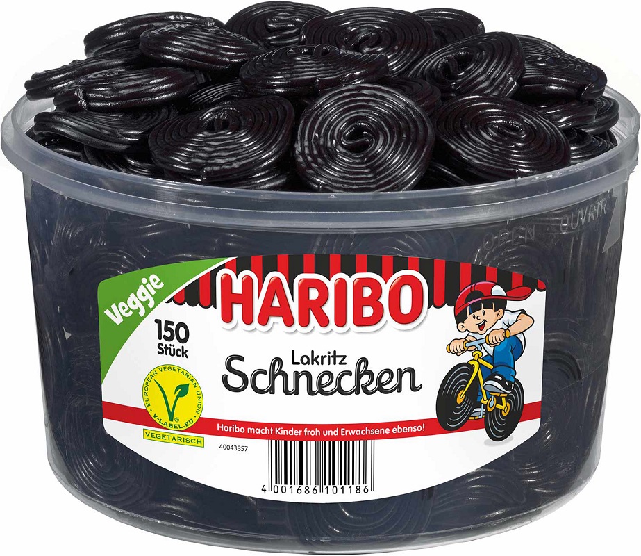 Haribo Lakritz Schnecken Veggie in 150er Runddose 1500g