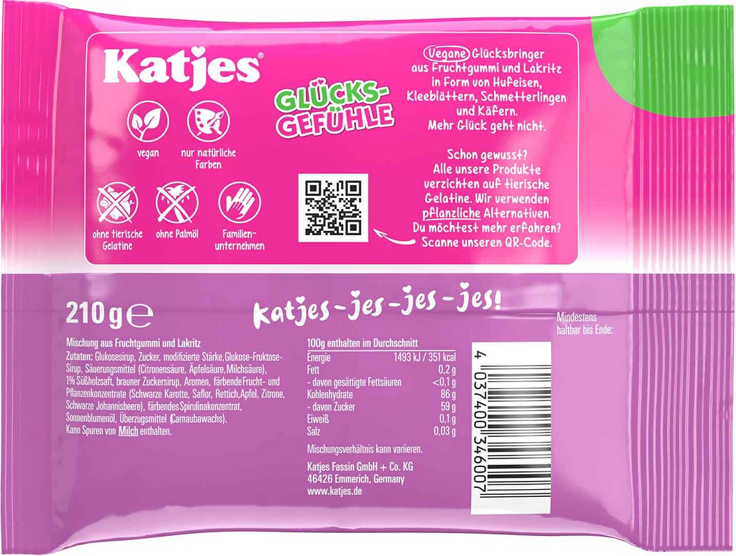 Katjes Glücksgefühle Mischung aus Fruchtgummi & Lakritz Für Veganer geeignet im 210g Beutel