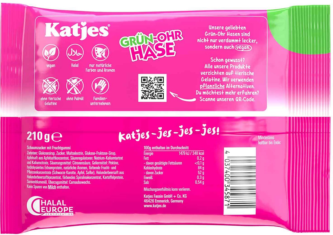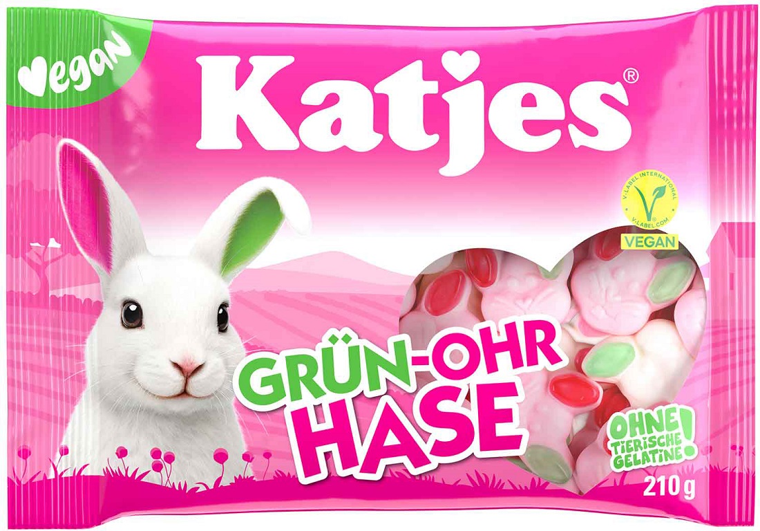 Katjes Grün-Ohr Hase, Schaumzucker mit Fruchtgummi, natürliche Aromen und Farben