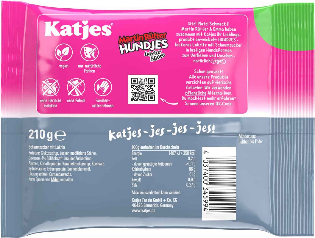 Katjes Martin Rütter Hundjes Lakritz Edition, weiches Lakritz, Für Veganer geeignet im 210g Beutel