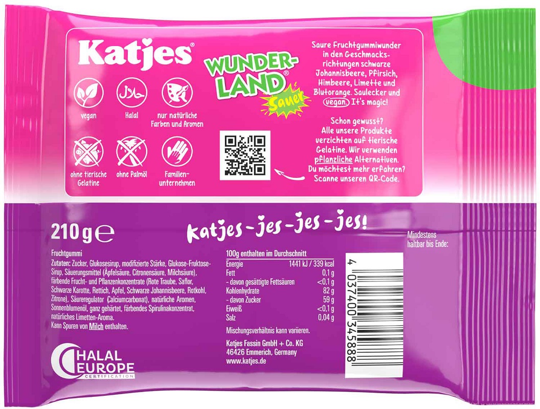 Katjes Wunderland Sauer, saures Fruchtgummi. Für Veganer geeignet im 210g Beutel