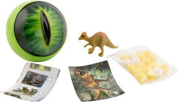 Dino Eye Ball Surprise buntes Dinosaurier-Auge 3/s mit Dino-Sammelfigur + Sticke