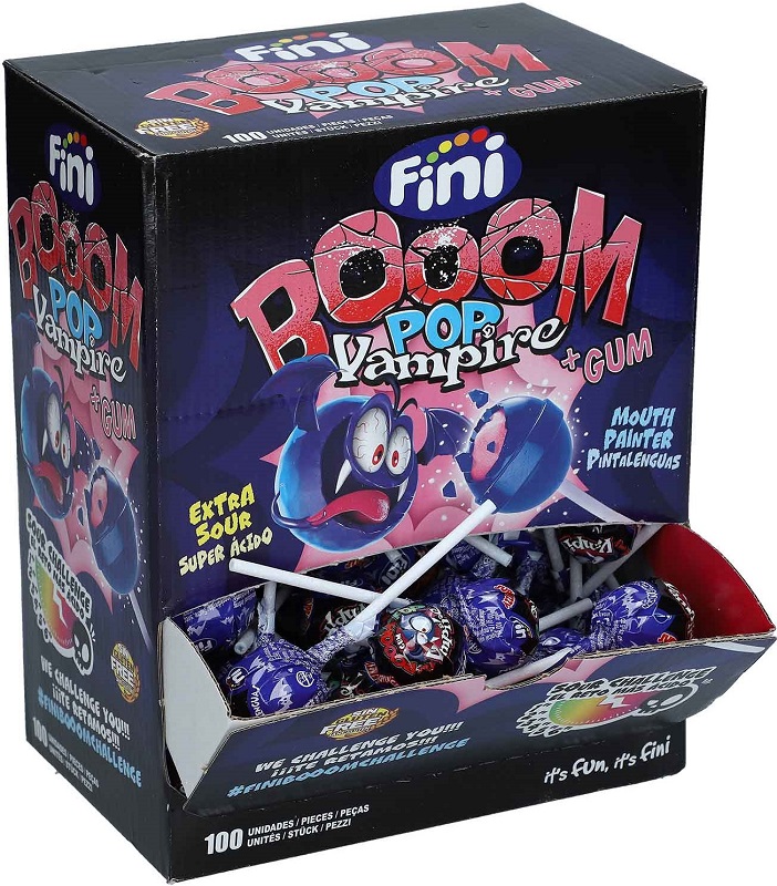 Fini VAMPIR Zungenfärbwer Lollis + Kaugummi im Kern - 100 Stück einzelpack/Box (Halal)