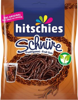 Hitschler Schnüre Cola Fruchtgummi-Schnüre mit Cola-Geschmack im 125g Beutel