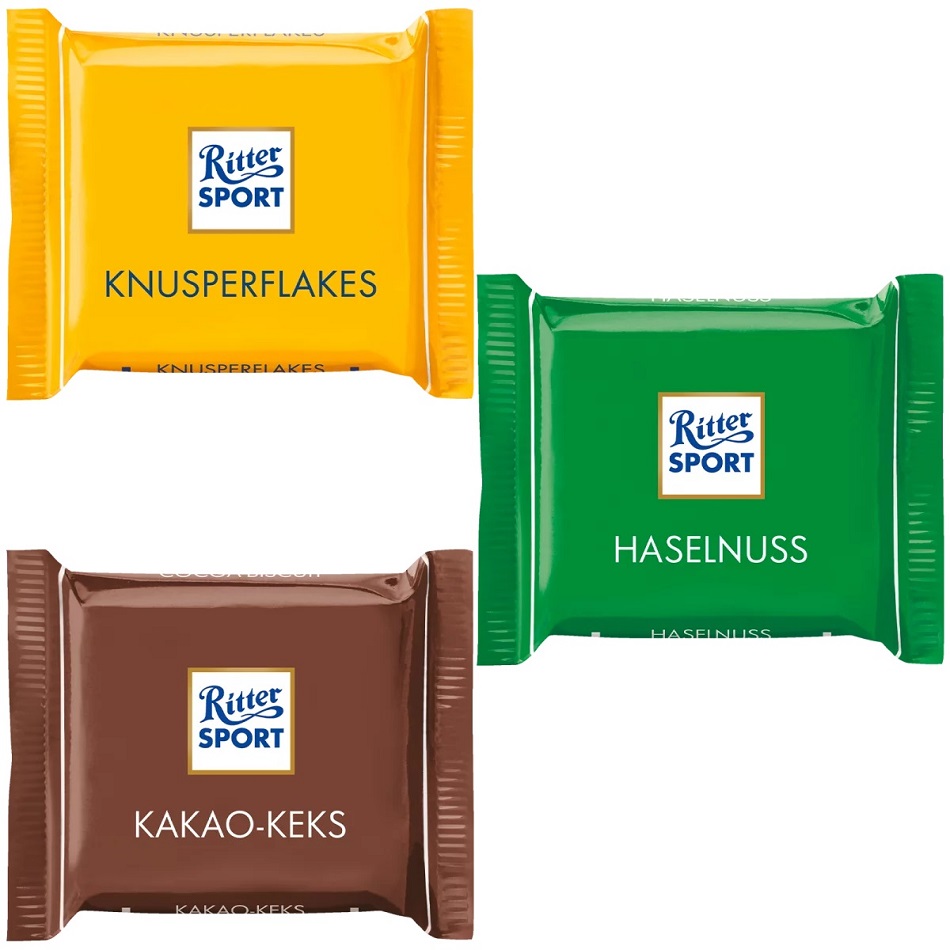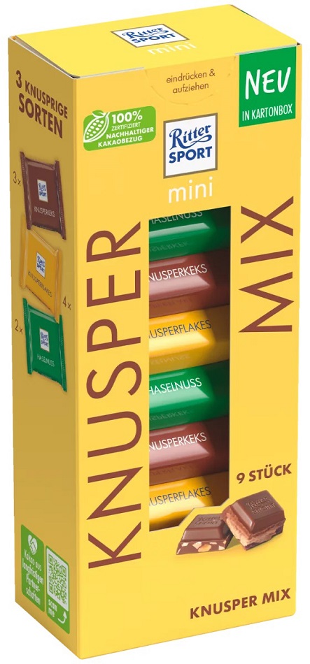 Ritter Sport Minis Knusper Mix Turm 150g 9 kleine Tafeln 3/s (Knusperflakes, Haselnuss, Kakao-Keks)
