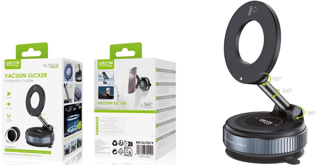 Magnetische Handyhalterung Vacuum Succer mit Saugnapf, 360° drehbar & an zwei Ac