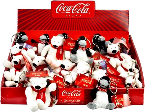 Coca Cola Plüsch Schlüsselanhänger ca. 8,5cm (16x Eisbär mit Schal 8x Pinguin mit Schal) im 24er T-Dsp.