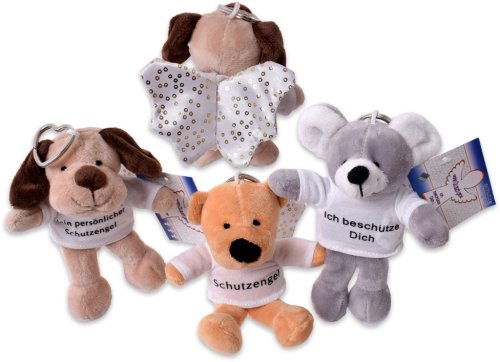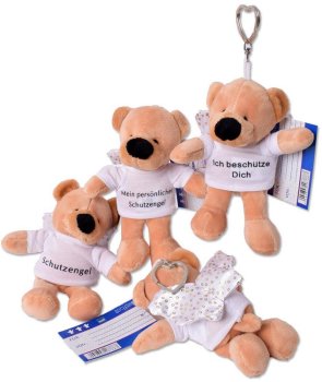 Plüsch Schutzengeltierchen Anhänger mit süßen Sprüchen auf T-Shirt & Schutzengelkarte (Für: , Von:) an Schlüsselkette in Herzform 3/s (Bär, Hund, Maus) ca. 12cm im 24er T-Dsp.