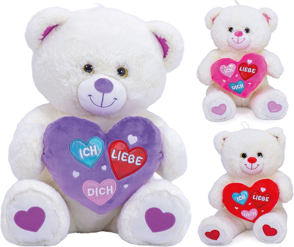 Plüsch Bär mit GlitzerAugen, Herz "Ich Liebe Dich" & Herzen auf den Pfoten 3/s ca. 38cm (Lila, Pink, Rot)