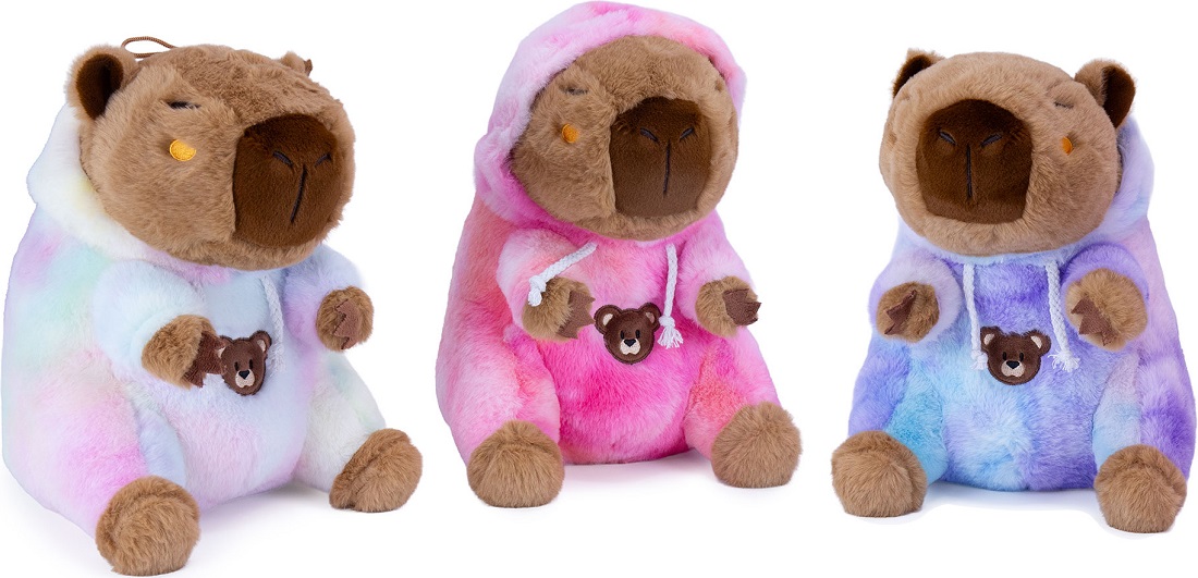 Plüsch Capybara in Hoodie-Anzug mit Bärchen-Stickerei, Pastellfarbend 3/s ca. 25