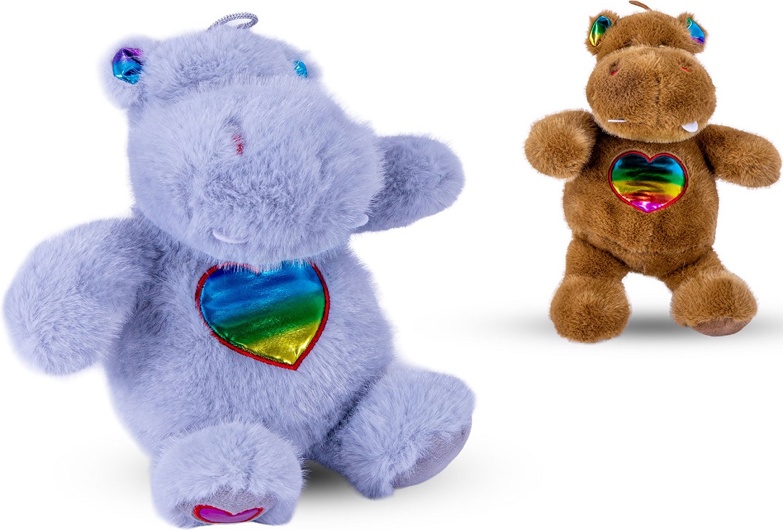 Plüsch Hippo mit Regenbogenherz auf Bauch und Pfoten 2/s ca. 18-23cm (Blau, Braun)