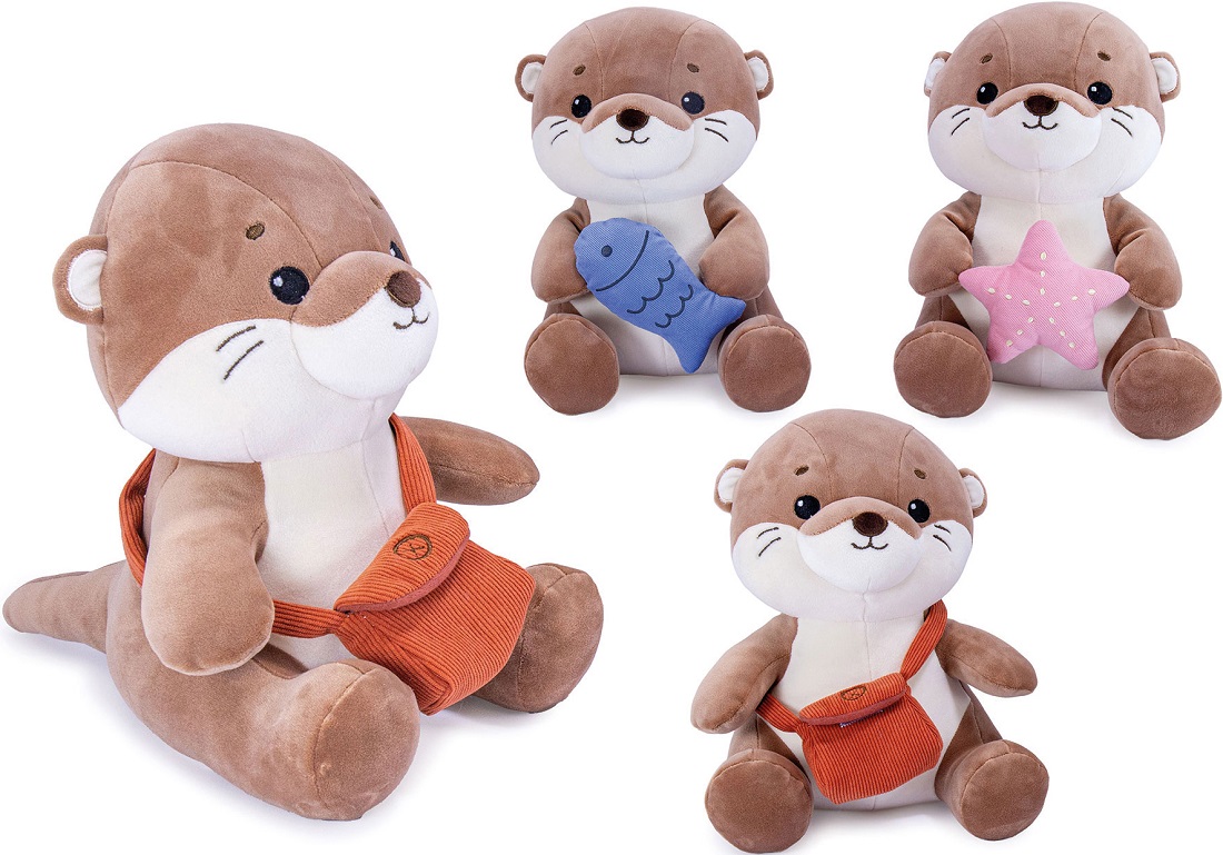 Plüsch Otter sitzend mit Accessoire in der Hand 3/s ca. 25cm (Schultertasche, Fisch, Seestern)