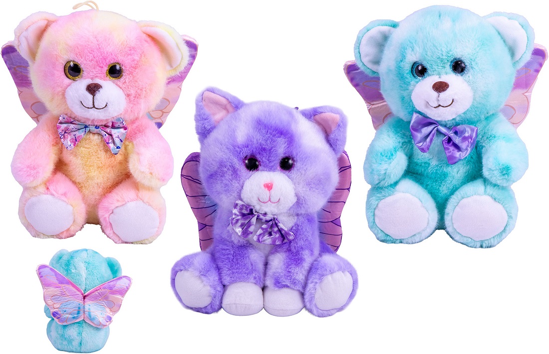 Plüsch Tiere mit GlitzerAugen, Flügeln & Fliege, in Pastellfarben 3/s ca.28cm (P