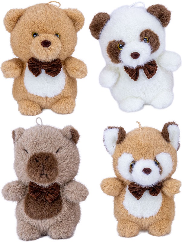 Plüsch Tiersortiment Supersofte kleine Tierchen mit GlitzerAugen & Fliege 4/s ca. 20cm (Bär, Hund, Capybara, Waschbär)