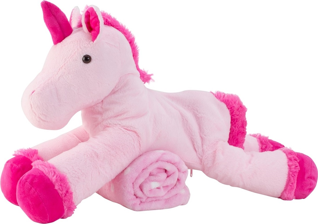 XL Plüsch Set Einhorn & Kuscheldecke Rosa / Pink ca. 63cm (Decke ca. 80 x 100cm)