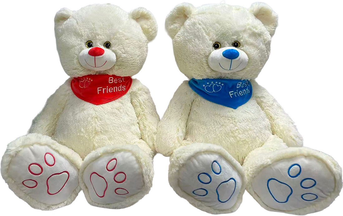 XXL Plüsch Bär Creme-farbend mit Halstuch "Be Friends" 2/s ca. 55-80cm (Rot, Blau)