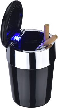 Auto Aschenbecher mit LED 2/s (Schwarz und Silber) ca. 11,7 x 6,5cm in 6er T-Dsp