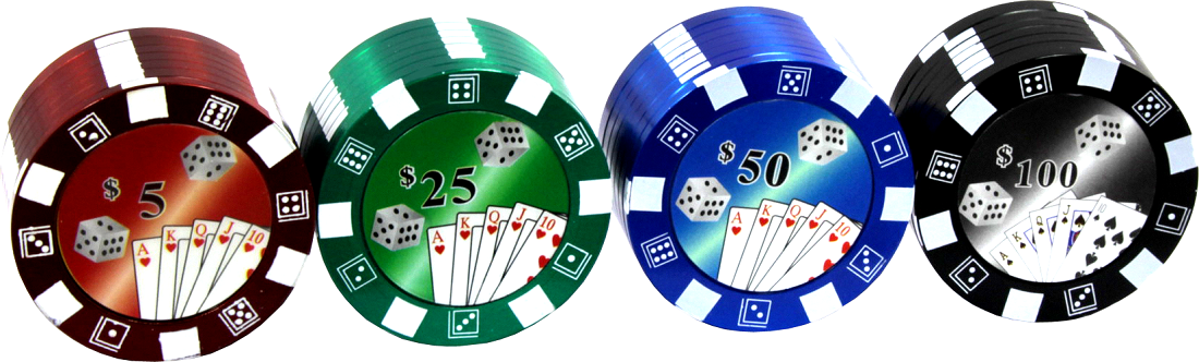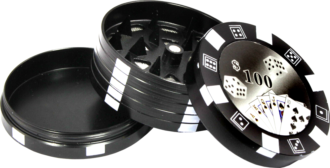 Grinder Metall im Pokerchip Design Ø50mm 3-tlg. 4/s im 12er T-Dsp. (Blau, Rot, G