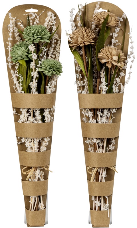 Trockenblumen-Gesteck 2/s mit Grünen & Braunen Blumen gepackt in Kraftpapier ca.