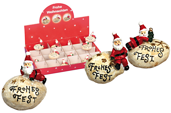 Weihnachtsmann auf Stein mit Schriftzug "Frohes Fest" in 24er T-Dsp.
