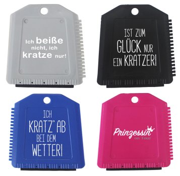 Eiskratzer mit Sprüchen 4/f 11,5x12 cm Prinzessin on Tour, Ich beiße nicht, ich kratze nur, Ist zum Glück nur ein Kratzer, Ich kratz' ab... bei dem Wetter