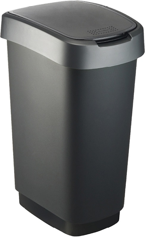 Rotho Swingeimer Twist, Abfalleimer mit 10L Fassungsvermögen, Schwarz & dunkel Silber
