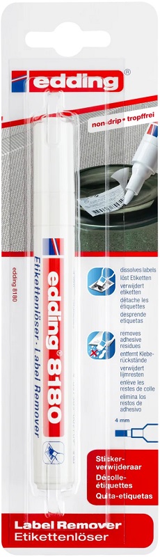 Edding 8180 Etikettenlöser 4mm Keilspitze, Einzel-Blister - ermöglicht die mühelose Entfernung von Papieretiketten & hinterlässt keine Rückstände