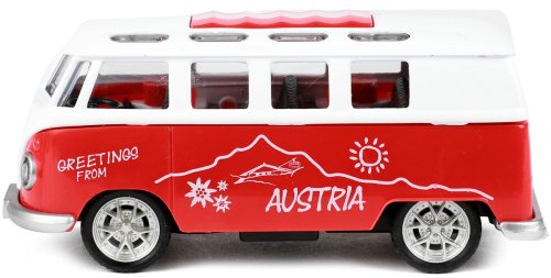 Retro Bus Greeting from Austria Metall Rückzug 12x5x5,5cm 12er T-Dsp.