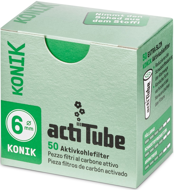 ACTITUBE Konik Aktivkohle Eindrehfilter Ø6mm Filter in 50er Packung