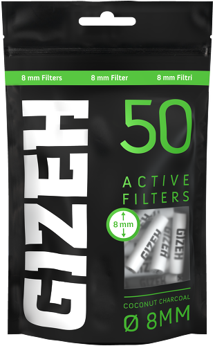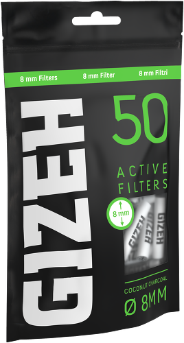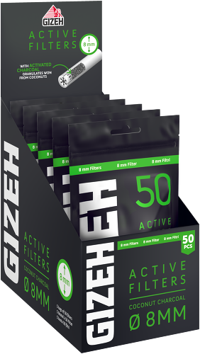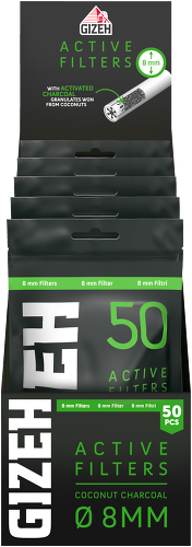 GIZEH BLACK® Active Filter Aktivkohle aus gereinigten Kokosnussschalen Ø8mm 50 Filter im Beutel, im 5er T-Dsp.