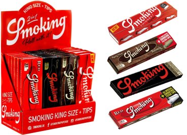 Smoking King Size Mix Smoking Red, -Deluxe, -Brown, -Thinnest 4/s je Sorte 6 Stk. 33 Blatt +33 Tips in 24er T-Dsp.