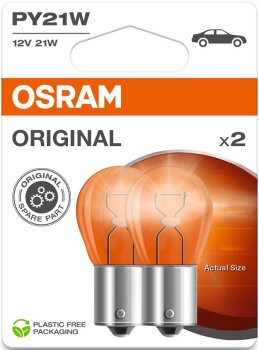 Osram Birne 12V - PY21W - 12V 21W Orange BAU15s in Doppel Blister (ECO Verpackung)