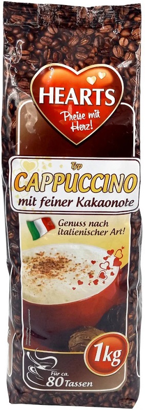 Hearts Instant Kaffeepulver Cappucino mit feiner Kakaonote in 1000g Beutel